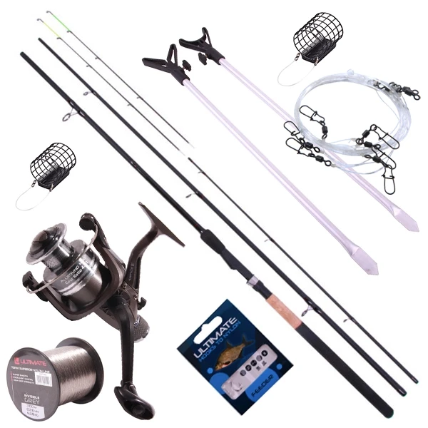 Met deze Allround Power Feeder Set ben je klaar voor het feedervissen op kanalen, rivieren, plassen, meren en commercials! In deze set vind je een medium/heavy Ultimate Allround Power Feeder hengel met een krachtige Ultimate Allround 4000 molen. Hiermee ben je witvis, brasems, zeelt en kleine karper gemakkelijk de baas! Daarnaast bestaat de set uit handige witvis accessoires als voerkorven, onderlijnen en feedermontages. Met deze Allround Power Feeder Set kun je rechtstreeks door naar de waterkant!