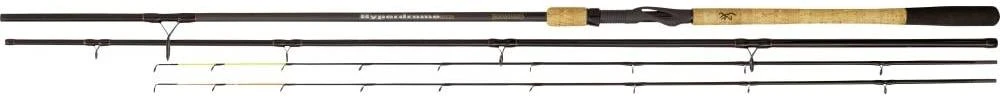 De Hyperdrome Feeder van Browning is de ultieme feeder hengel! Met deze hengel heb je een extreem goede controle over de vis en begeleid je zelfs de grootste exemplaren met overtuiging naar je landingsnet. De semi-parabolische actie voorkomt daarbij dat vissen te snel losschieten. Ondanks de power beschikt de Hyperdrome Feeder over een super slanke blank. Een bijzonder kenmerk zijn de extra lange toppen die absoluut onverwoestbaar zijn, en de uitvoering met Fuji-geleideogen over de volle lengte, waardoor je met vertrouwen en precisie veelbelovende hotspots aan kunt werpen.