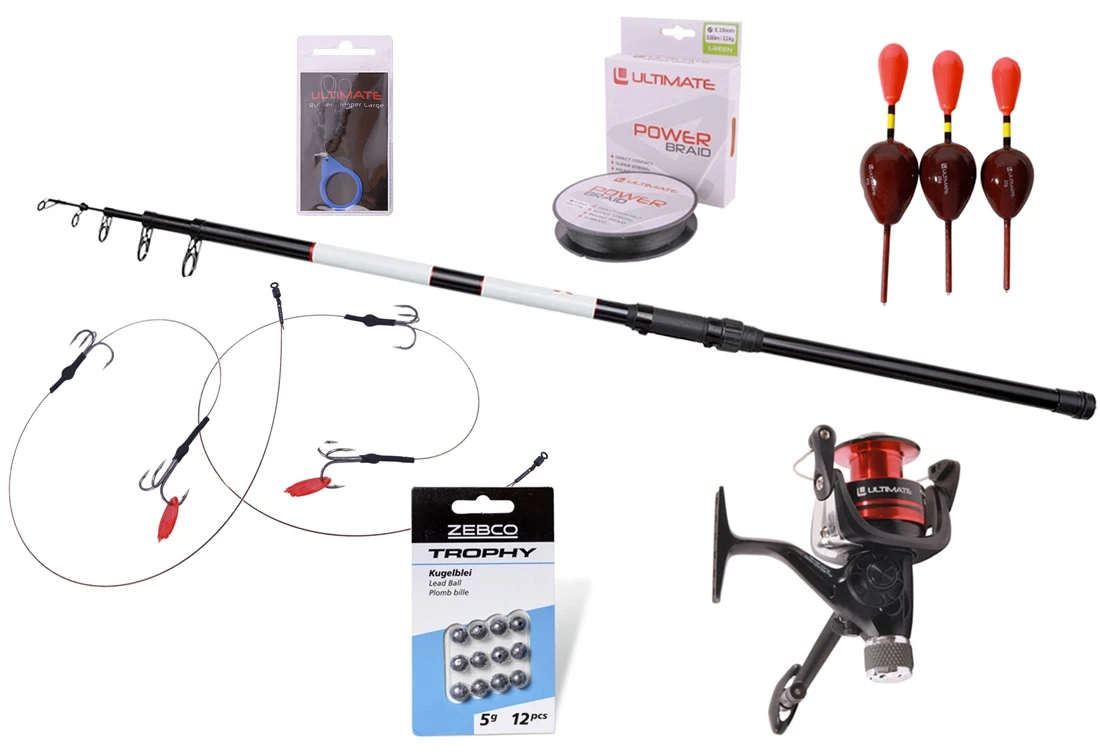Deze complete set biedt alles wat je nodig hebt voor het vissen met doodaas op snoek, snoekbaars en andere roofvis. De basis voor deze set is de Dam Base-X Tele Pike, een sterke telescopische spinhengel met een lengte van 3,50m die ideaal is voor het dobber- of bodemvissen en een Ultimate Allround spinmolen met een bijzonder soepele lijnafgave en een betrouwbare slip achterop. De meegeleverde Ultimate Power Braid gevlochten lijn heeft uitstekende werpeigenschappen en is rekloos, waardoor je een beter gevoel en betere controle hebt en het Kogellood van Zebco heeft een centrale lijndoorvoer, waardoor een direct contact met de vis mogelijk wordt gemaakt. De set wordt gecompleteerd met twee Ultimate 7×7 Steelwire Deadbait Leaders met een lengte van 40cm waaraan twee vlijmscherpe dreggen zijn bevestigd en maar liefst drie dobbers met verschillend drijfvermogen en uitstekende zichtbaarheid die speciaal ontwikkeld zijn voor het vissen met dood aas. Met deze set ben je klaar voor de jacht op snoek, baars en snoekbaars. Maximaal visplezier voor de beste prijs!