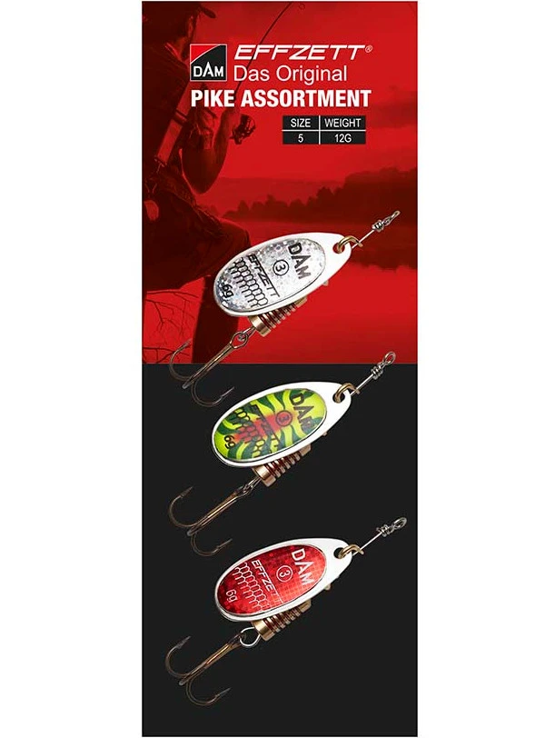 Een universeel assortiment die bestaat uit spinners waarmee perfect op je favoriete vissoort gevist kan worden. Deze hoge kwaliteit spinners zijn gemaakt uit stevig materiaal en de spinnerbladen zijn voorzien van bewezen vangende kleurenpatronen. Dankzij de verschillende kleurenpatronen kunt u snel inspelen op de wisselende omstandigheden. Daarnaast zijn de spinners voorzien van een vlijmscherpe haak. Met het Effzett Spinner Assortiment heeft u een schitterende aanvulling voor de tacklebox voor handen.