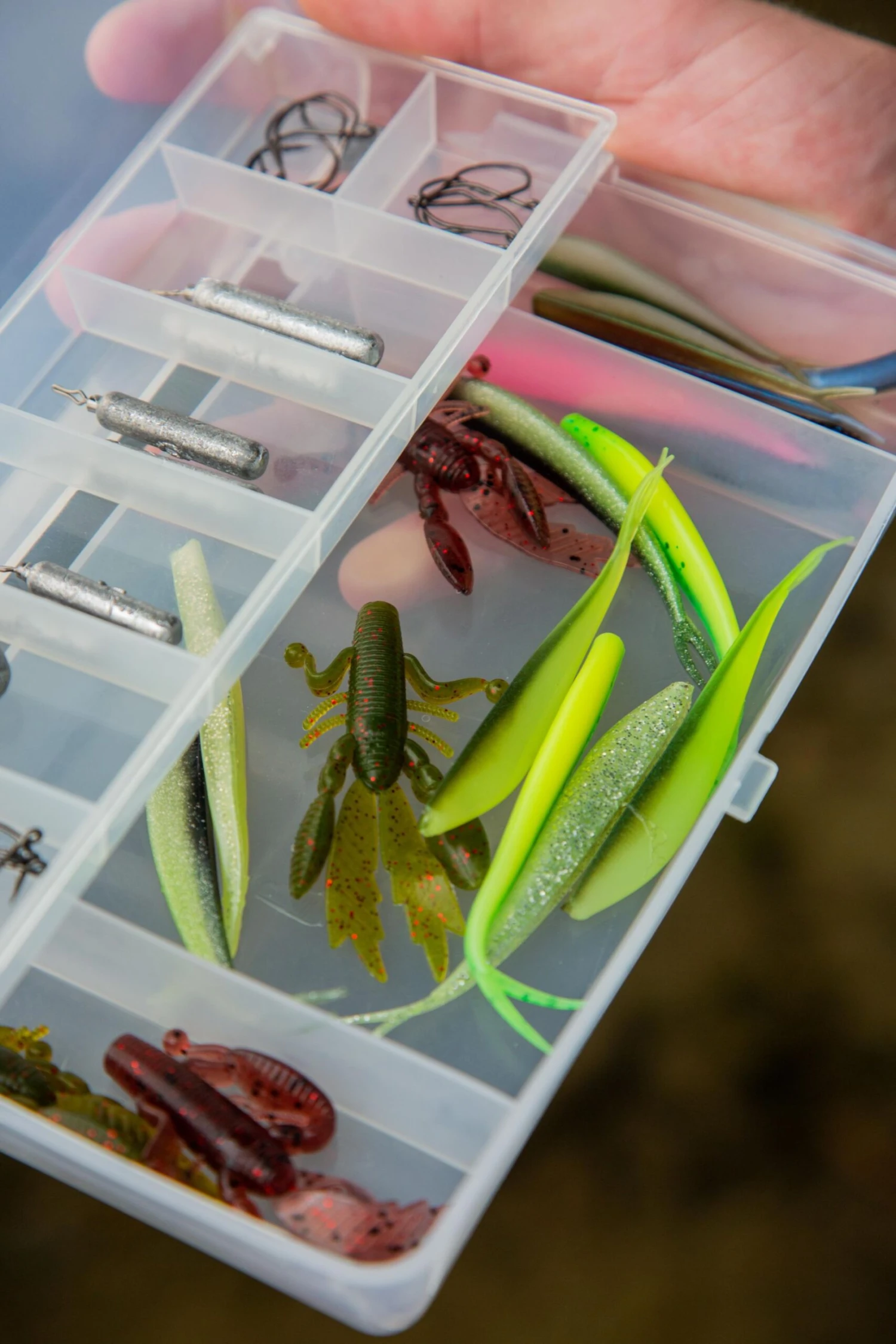 Deze Dropshot Box van Ultimate is de ultieme set voor de beginnende én gevorderde dropshotvisser. Deze box bevat alles wat je nodig hebt voor een dropshotmontage: haken, lood en een zeer gevarieerde selectie softbaits, van shads in gevarieerde kleuren en maten tot crayfish imitaties. De onderdelen zijn opgeborgen in een handige en overzichtelijke tacklebox.
