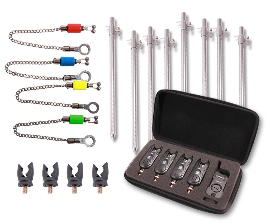 Wanneer de omstandigheden op een bepaalde stek de inzet van een rod pod verhinderen, of wanneer je gewoon flexibel wilt zijn in je set-up komt de oude, vertrouwde bankstick uitstekend van pas. Met deze set haal je niet alleen acht superieure banksticks in huis, maar ook een alarmset met vier beetmelders, vier hangers en vier achtersteunen. Perfect voor de karper- en doodaasvisser die met meerdere hengels vist in een flexibele opstelling!