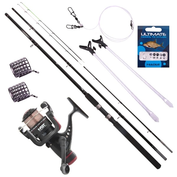 Deze Ultimate Recruit Feeder Set is perfect voor de feedervisserij op kanalen, rivieren, plassen, meren en commercials. In deze allround set vind je een Ultimate Recruit feederhengel met een lengte van 330cm en een medium-heavy actie. Daarnaast een Angling Pursuits molen volgespoeld met nylon lijn. Om deze set compleet te maken ontvang je 2 feederkorven, 10 feederonderlijnen, een ready-to-fish feedersysteem (3 stuks) en banksticks voor een optimale hengelopstelling. Met deze set kun je rechtstreeks door naar de waterkant voor het vissen met de feeder!
